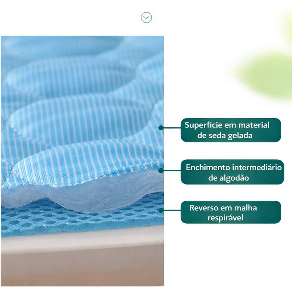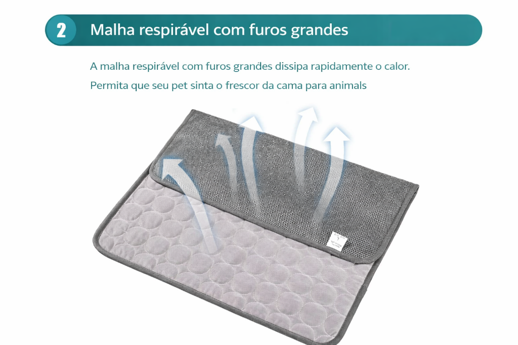 O material especial absorve o calor do corpo do animal, mantendo a temperatura equilibrada de forma natural. Perfeito para descanso, sono ou após passeios, cria um espaço fresco que reduz o estresse e melhora a qualidade do descanso mesmo nos períodos mais quentes do dia.