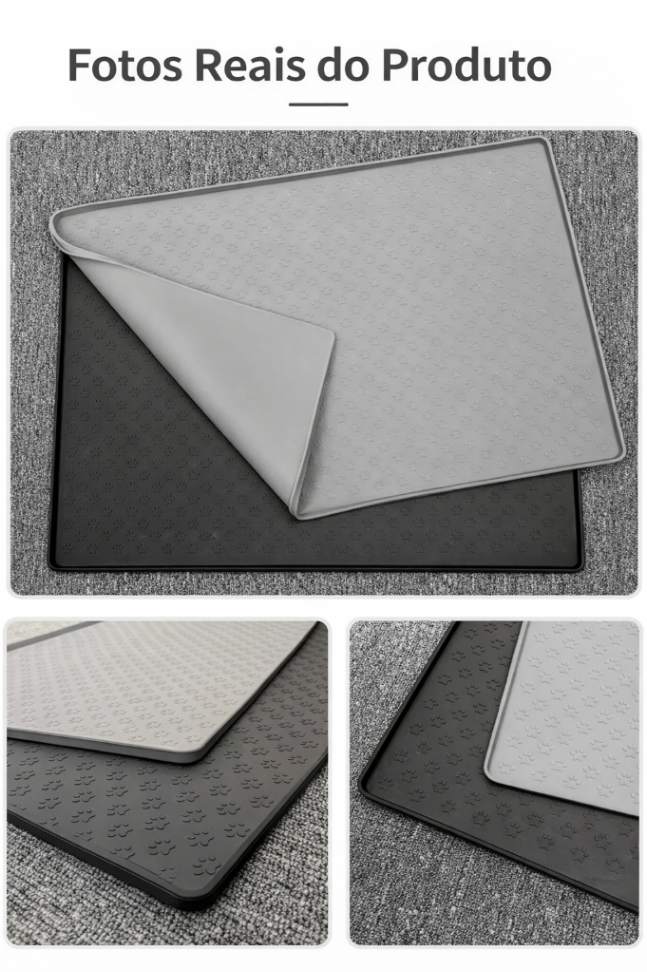Foi pensando exatamente nesse problema que surgiu o Tapete Impermeável para Comedouro de Gatos e Cachorros - PetPrático™, um tapete para alimentação de pets desenvolvido para manter o espaço do comedouro muito mais limpo, organizado e protegido.