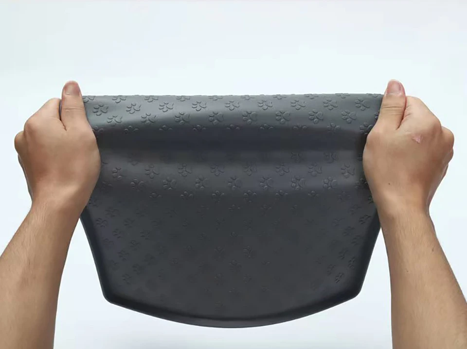 Além disso, a base antiderrapante mantém o tapete firme no lugar, mesmo quando o pet se movimenta enquanto come ou bebe água. Dessa forma, os potes ficam mais estáveis e a bagunça ao redor do comedouro é significativamente reduzida.